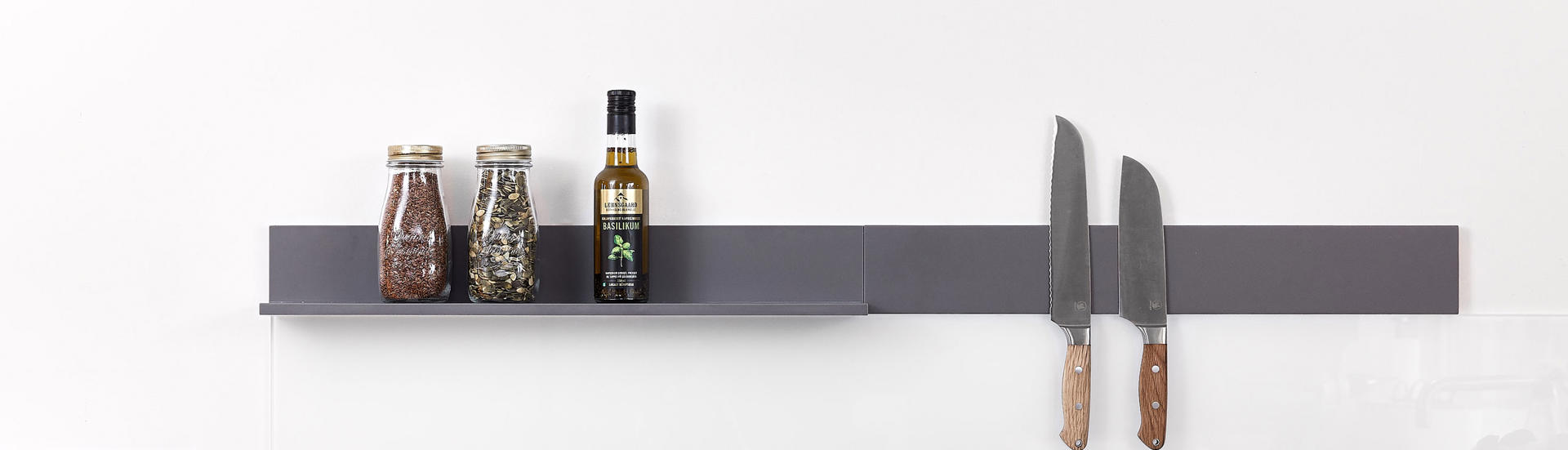 Knivmagneten er udformet i samme dimensioner som STRAIGHTS krydderihylde, og kan derfor let kombineres. Modulerne former en lige vandret linje og supplerer dermed et interiør med et enkelt og stærkt grafisk element. Kan naturligvis også monteres lodret over hinanden eller forskudt - kun fantasien sætter grænser!