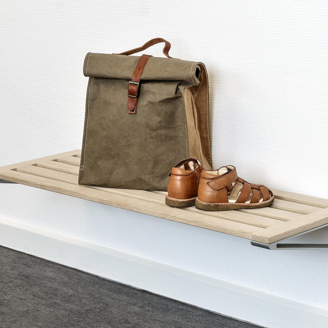 Skohylden er en smuk tilføjelse til entréen, garderoben, venteværelset eller andre steder, hvor sko har brug for en fast plads. Skohylden er vægmonteret for et luftigt udtryk, og er derfor ideel i smalle indgangspartier eller gangarealer.