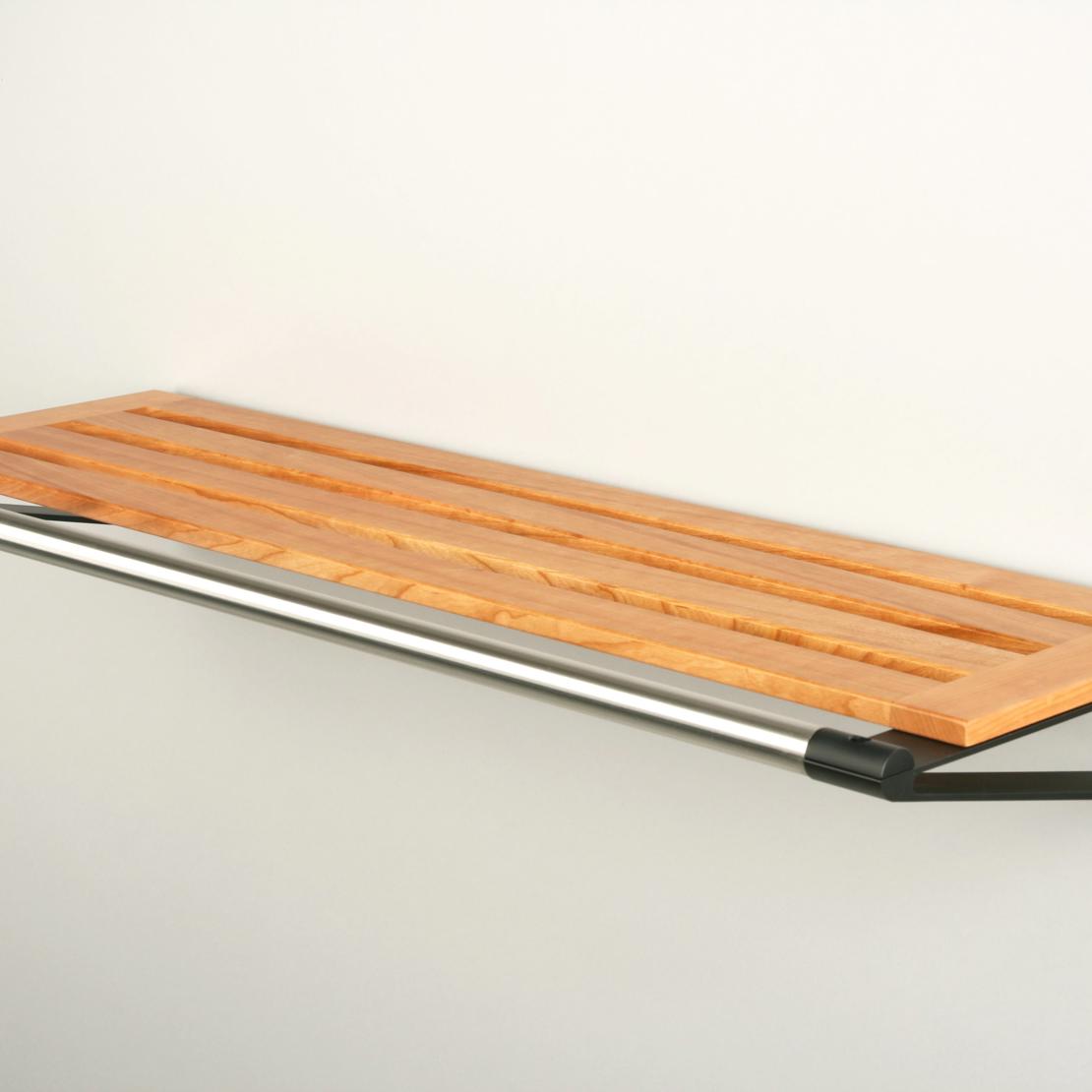 Die stilreine Hutablage ist in fünf Längen (40, 60, 80, 100 oder 163 cm) und mit unterschiedlichen Holzarten und Oberflächen erhältlich. Das Regal mit 163 cm Länge ist jedoch nur in Eiche (mit den unterschiedlichen Oberflächenbehandlungen) verfügbar.