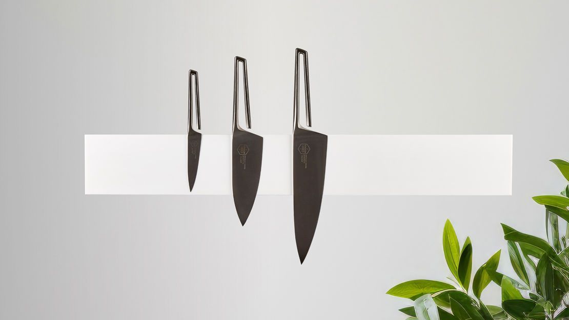 Porte-couteau simple et élégant qui, à 60 cm de large, offre tout l'espace désiré pour accueillir votre collection de couteau.