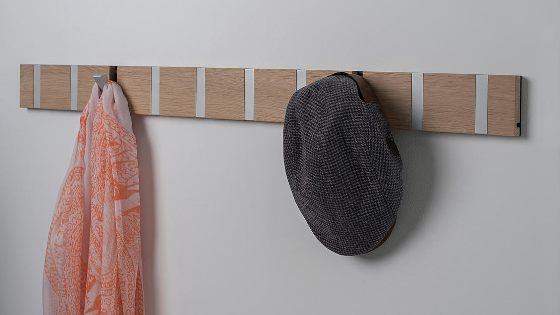 KNAX horizontal est proposé en version de deux à dix patères – dans de nombreuses essences de bois et une vaste gamme de couleurs.
