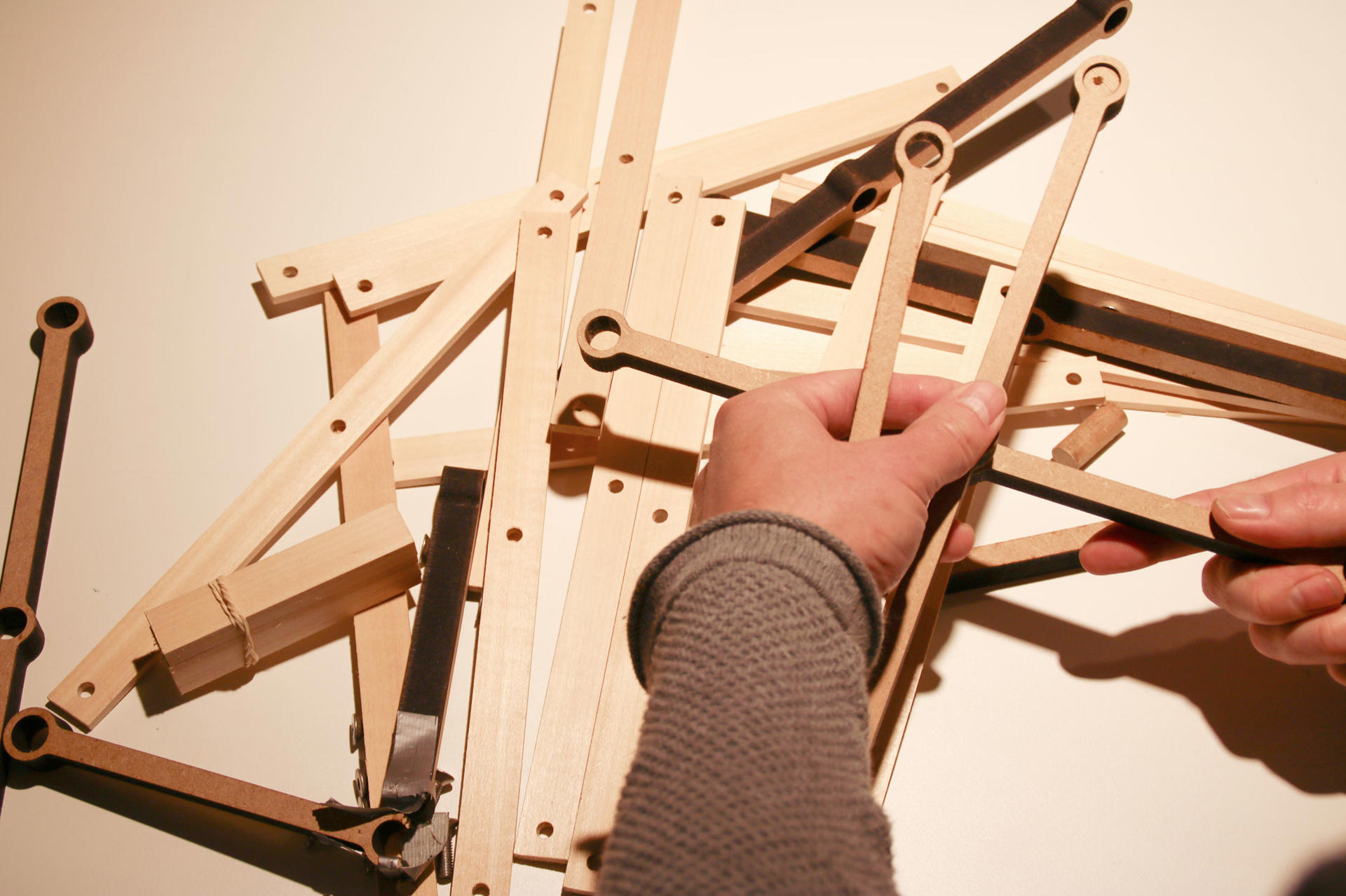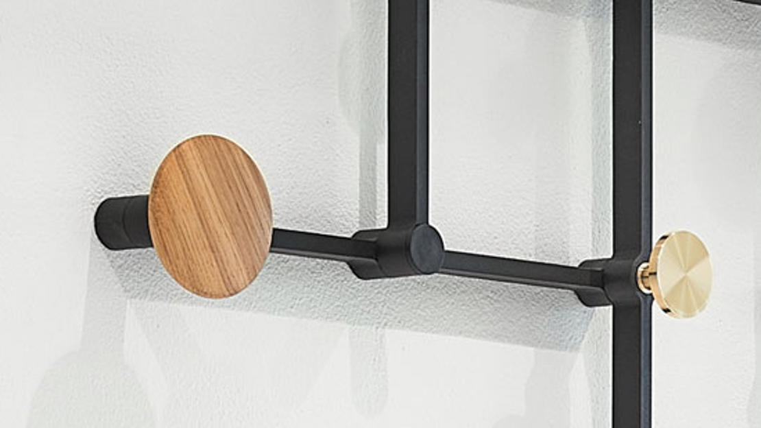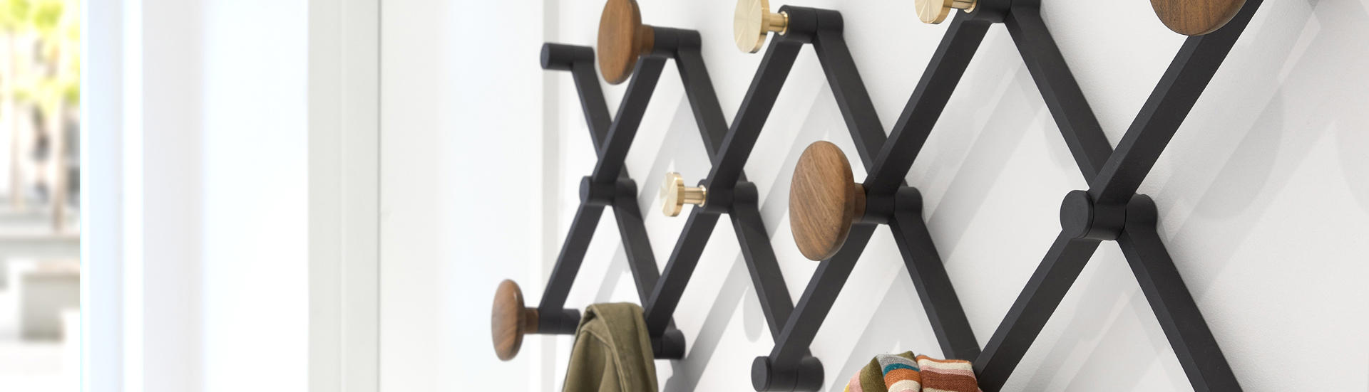 Au lieu d'un bras en ciseaux unique, tel que nous le connaissons pour les lampes et les miroirs, celui-ci est divisé en éléments individuels. Vous recevez un système vous permettant de concevoir et assembler votre propre portemanteau.