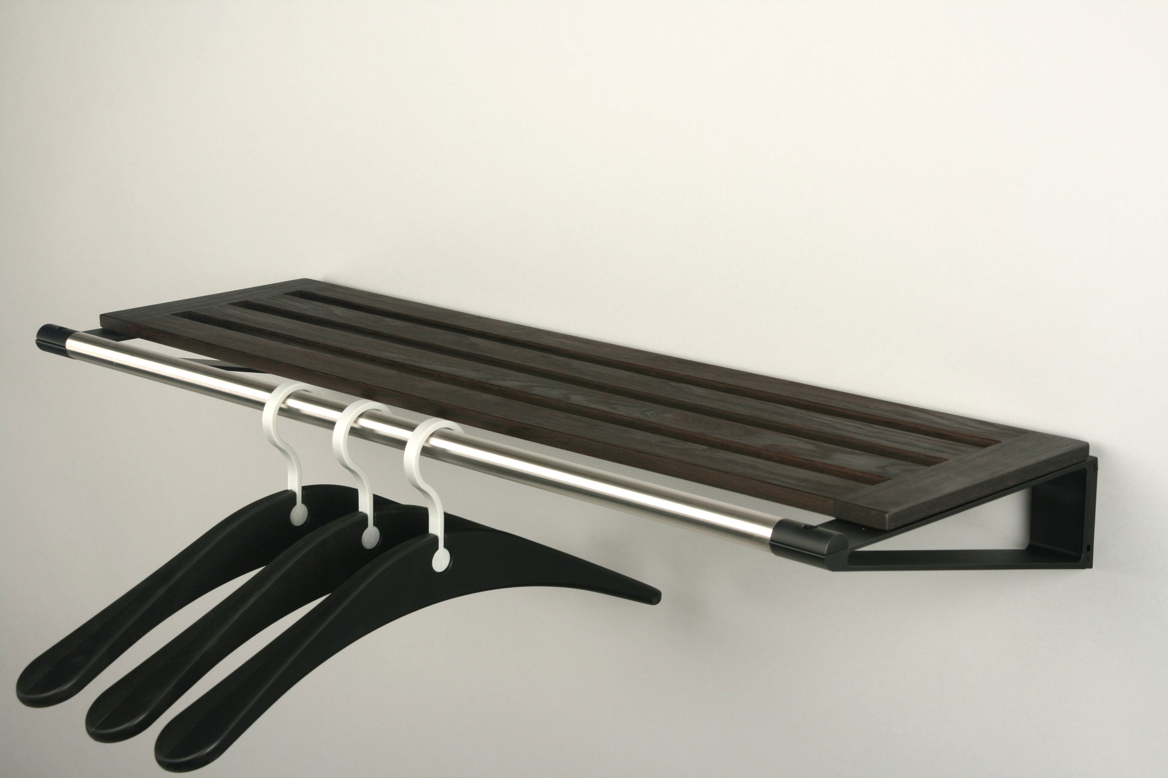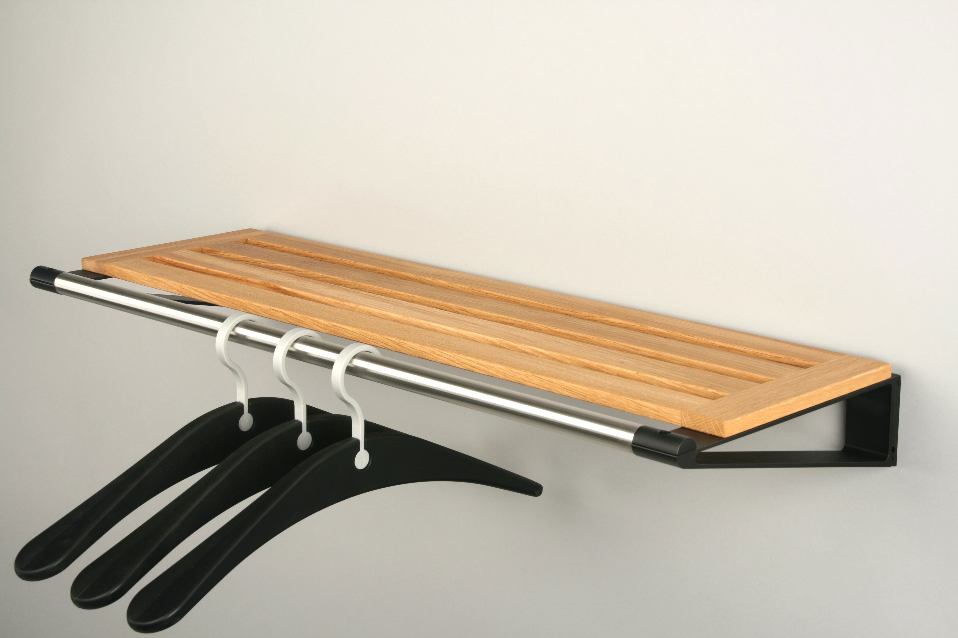 Vores elegante hattehylde tilbyder både bøjlestang til ophæng af jakker og frakker, men også plads til tasker, handsker, aviser eller andet tilbehør på hylden.