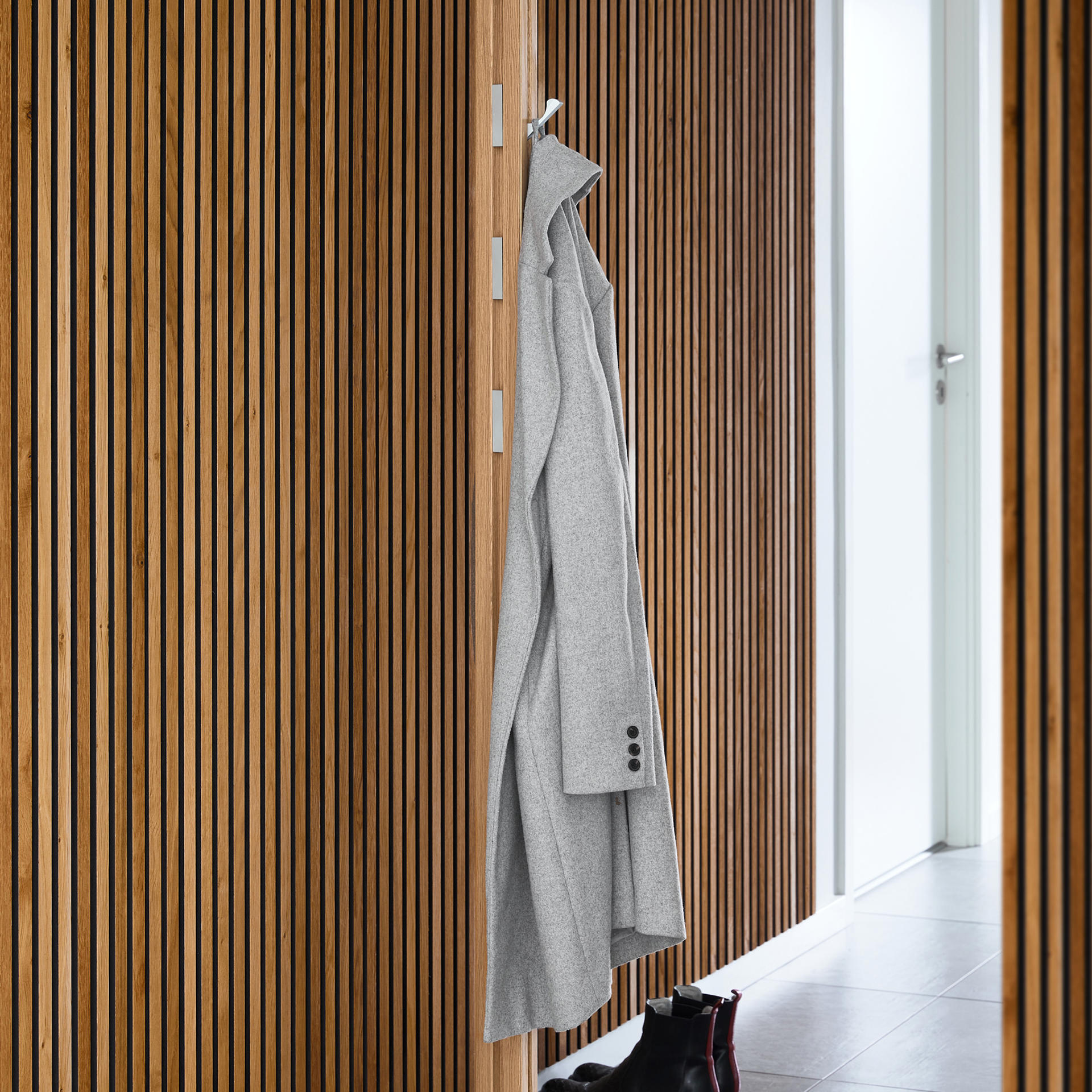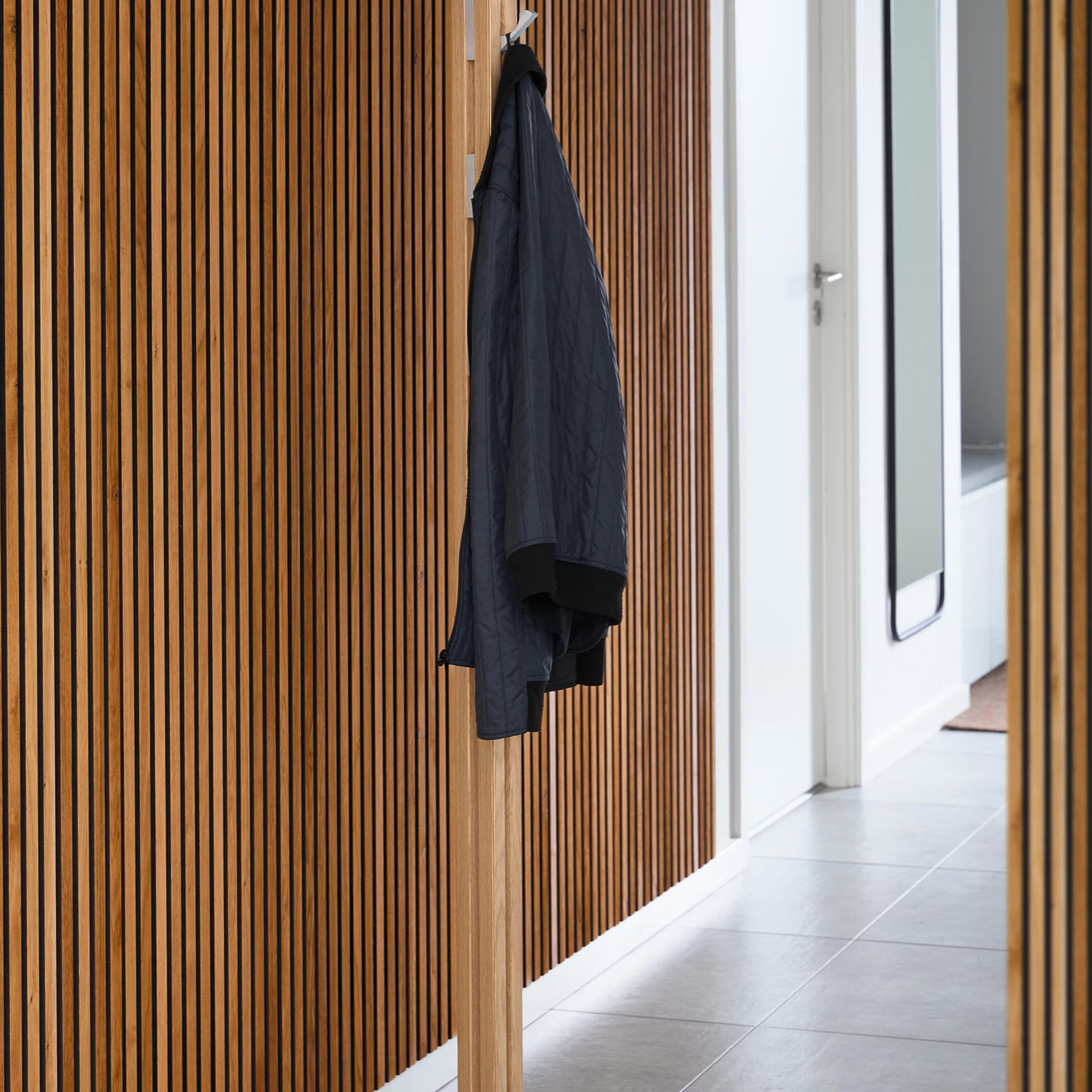 Den fritstående stumtjener fra KNAX serien er enkel og moderne i sit udtryk for at passe ind i entréer, venteværelser, kontormiljøer eller andre steder, hvor overtøjet skal have en fast plads.