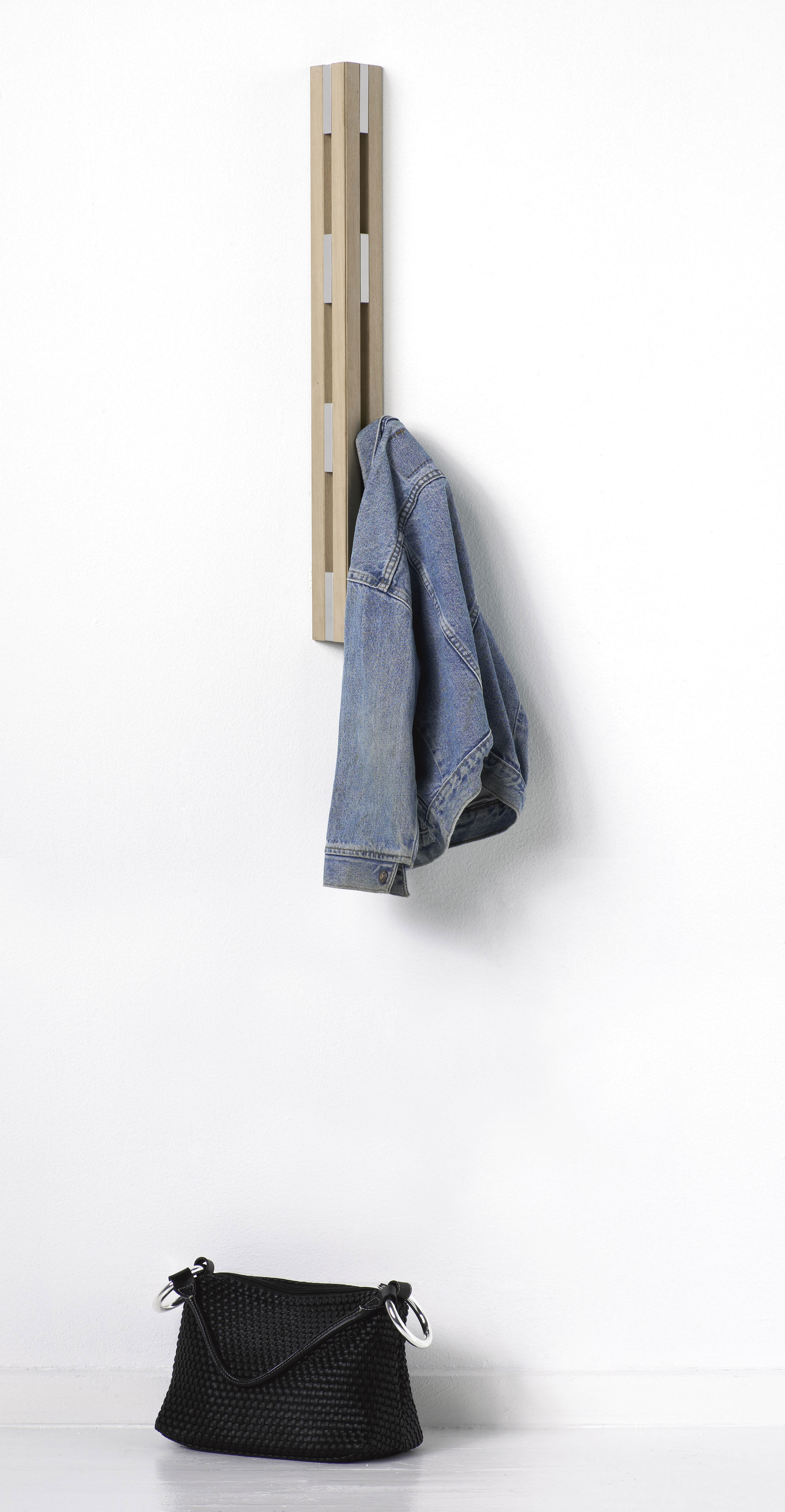 Vores KNAX lodrette vægtjener er, modsat den fritstående, nem opbevaring af overtøj, som skal hænge på væggen. Vægtjenerens trekantede design byder på funktionalitet, men tilføjer også et æstetisk element til vægge i entréer, bryggerser eller andre rum, hvor (over)tøj mangler en plads.