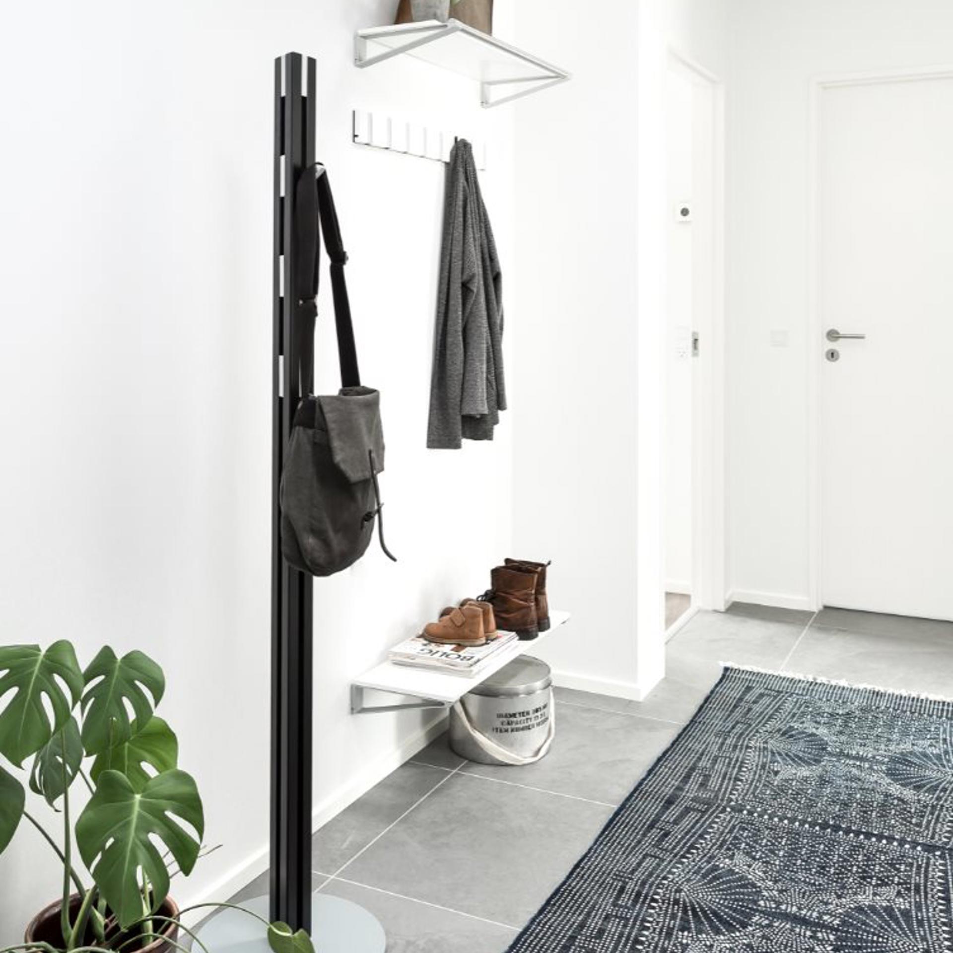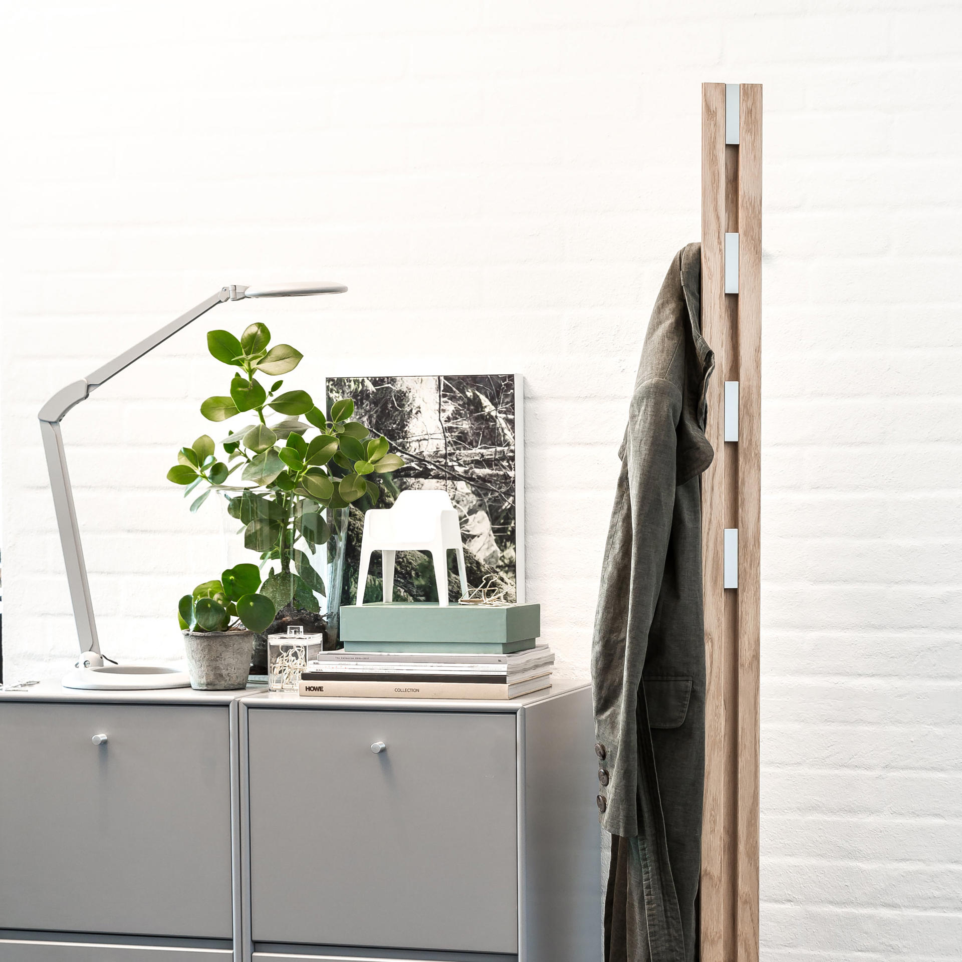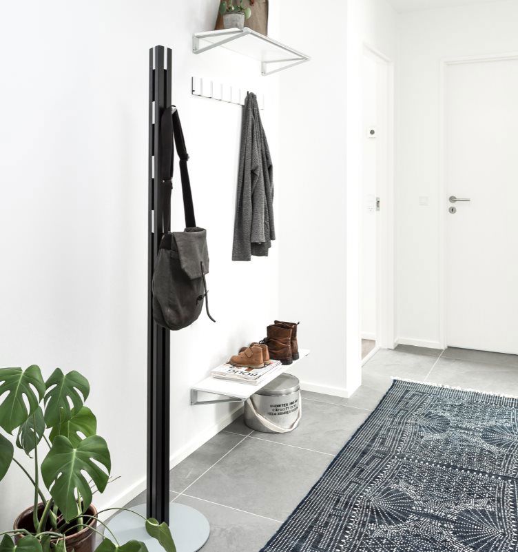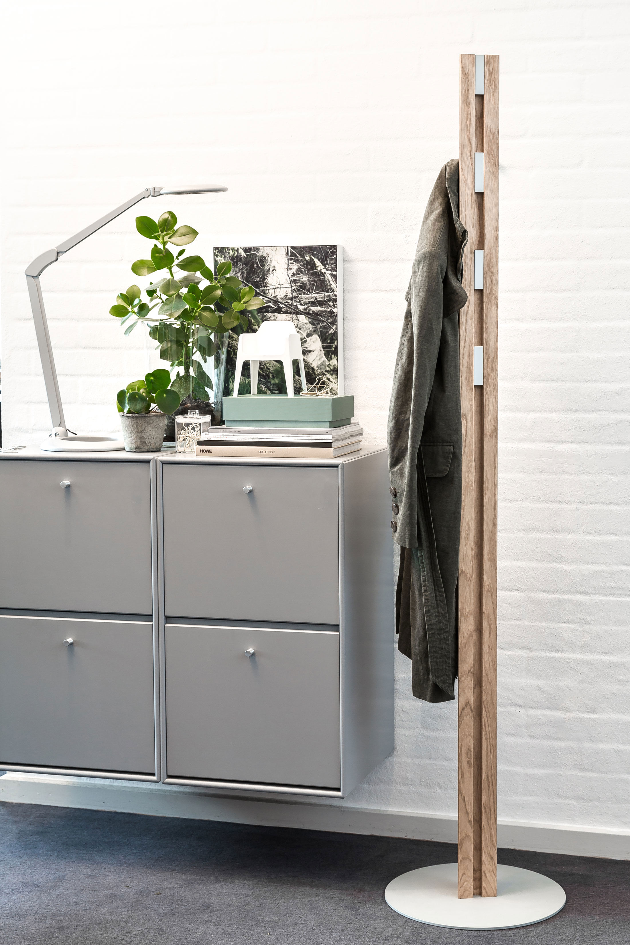 The freestanding hall stand from the KNAX range has a simple and modern look to fit into hallways, waiting rooms, office environments or other places where coats need a permanent place.
