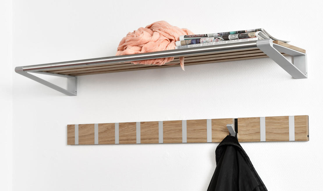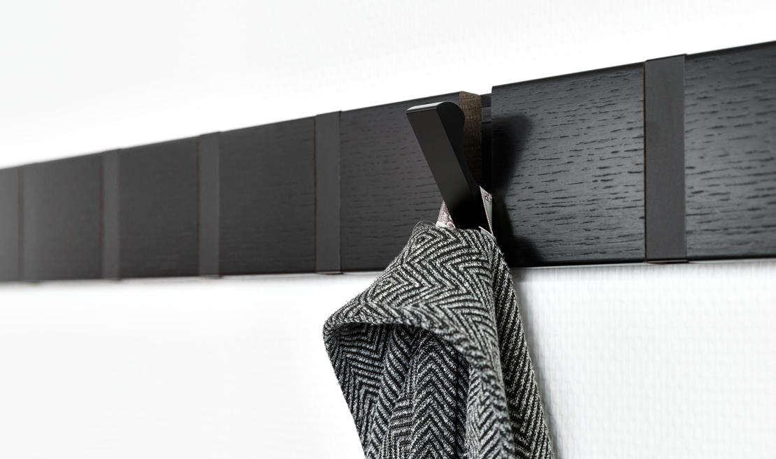 KNAX horizontal is a timeless and award-winning coat rack. The coat rack is ideal for places where space is limited, as the coat hooks are spring-loaded and spring back into place when not in use.