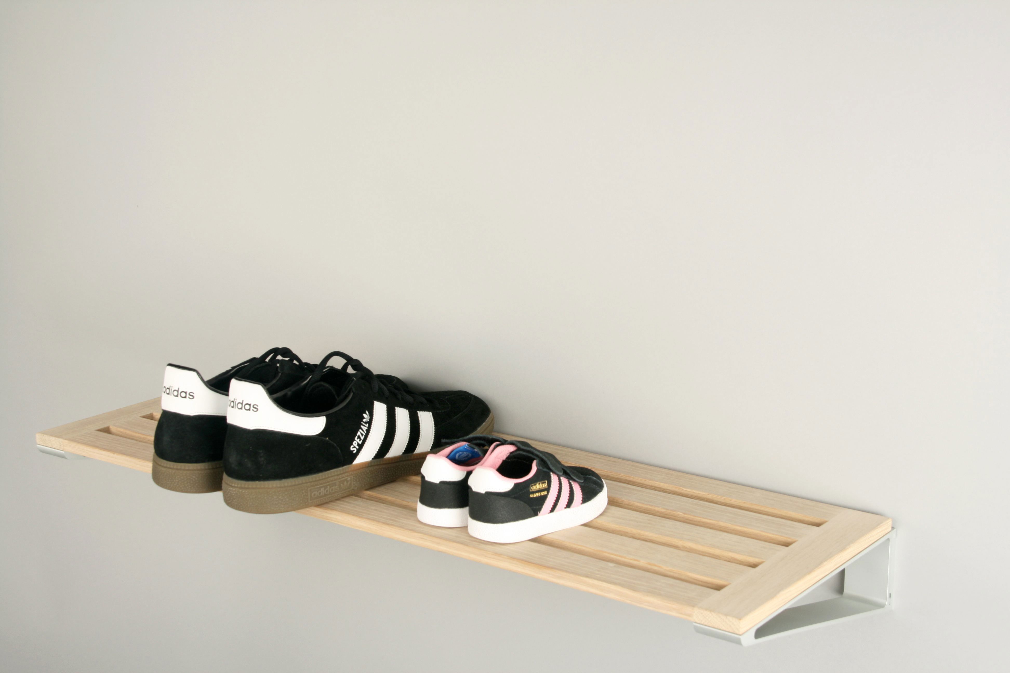The shoe rack is a beautiful addition to the entrance hall, cloakroom, wardrobe, waiting room or anywhere else shoes need a permanent place. The shoe shelf is wall-mounted for an airy look, making it ideal for narrow entrances or corridors.